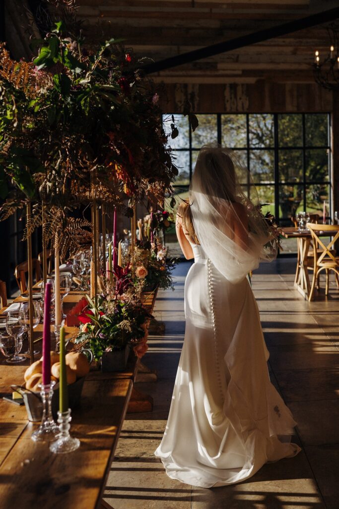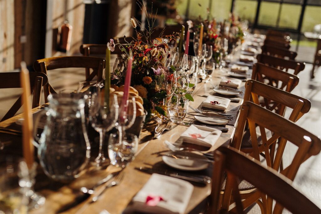 Bride and groom with table set-up