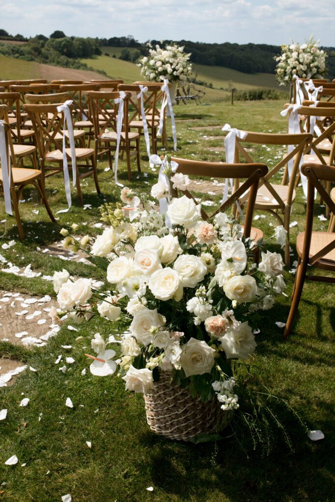 White floral outdoor seating