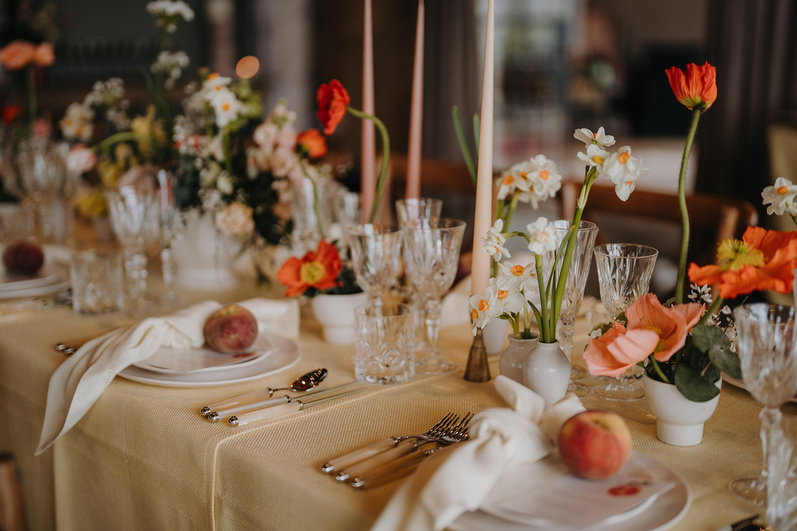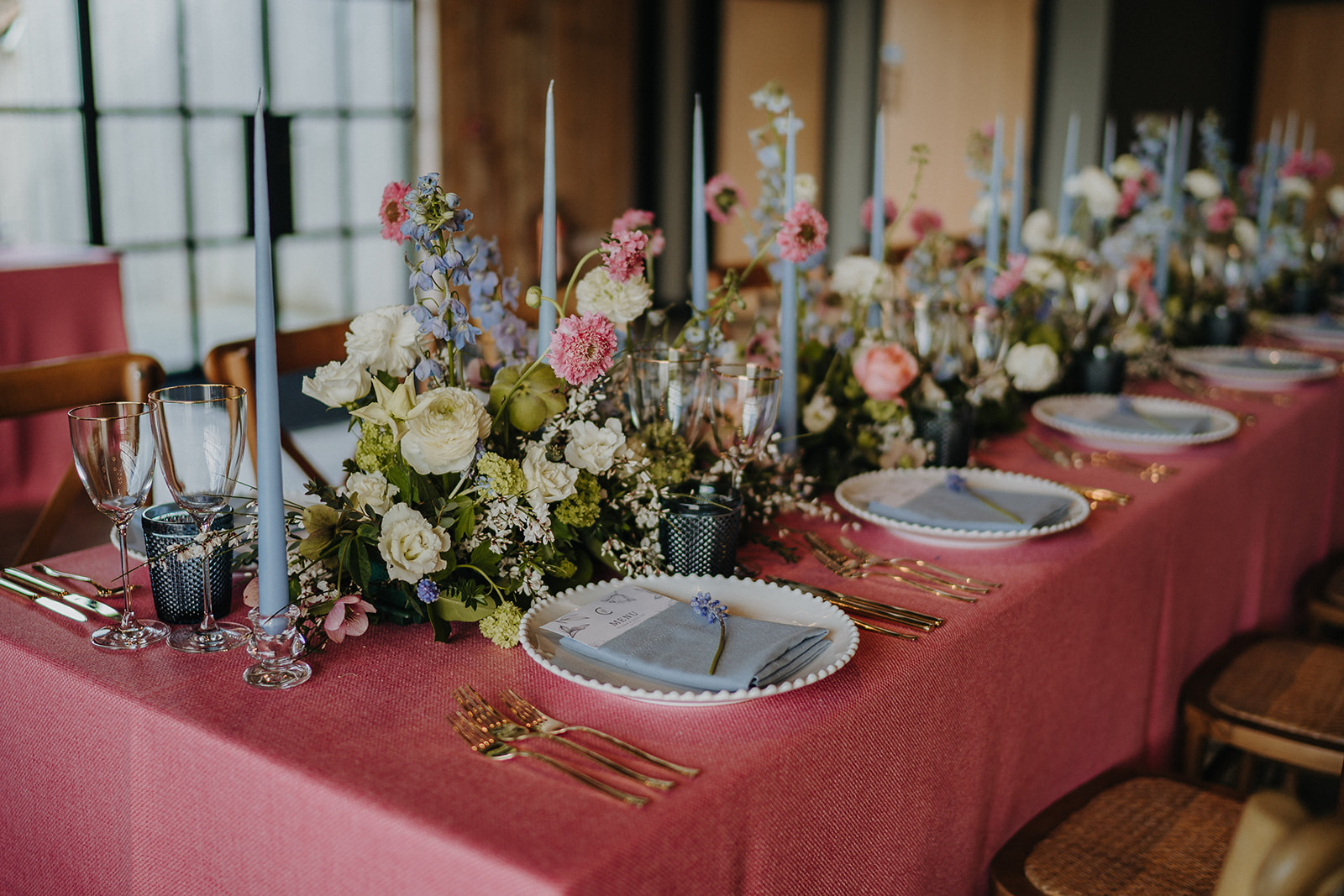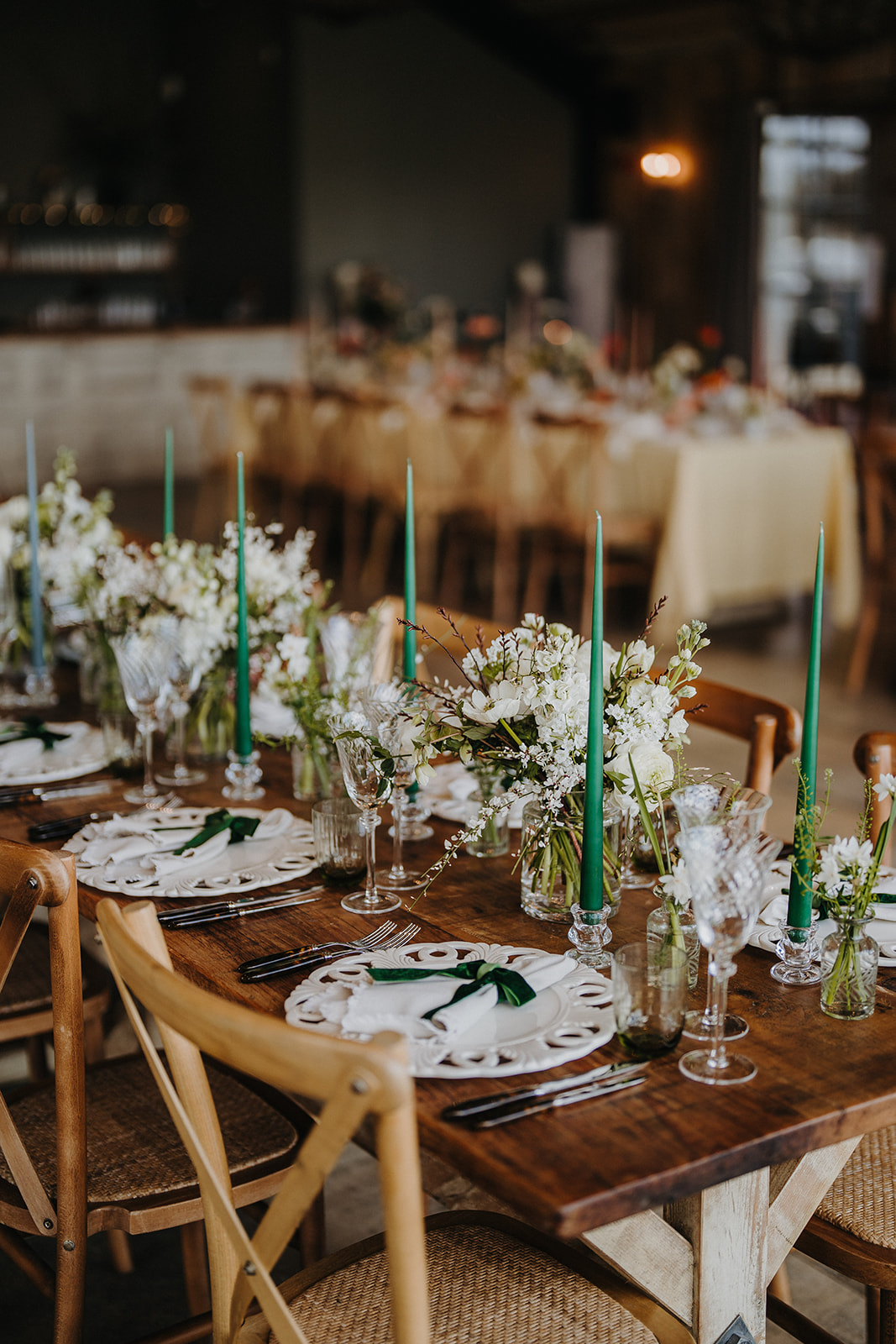 To showcase the venue in action, we asked our catering partners Caper & Berry, Lettice Events, Jimmy Garcia and Two Many Cooks to each collaborate with leading wedding florist Mad Lilies to decorate a table in the Main Barn.
